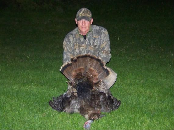 Well he sure isn't anything to brag about, but with 65 minutes left in my 2nd 5-day season, when 8 hens and this guy came scurrying into view from over my right shoulder and going bye-bye fast, it was gun up, click, and boom. The bummer is the long beard I was expecting to show was chasing them all and popped into the picture as soon as I looked up from the red dot.
