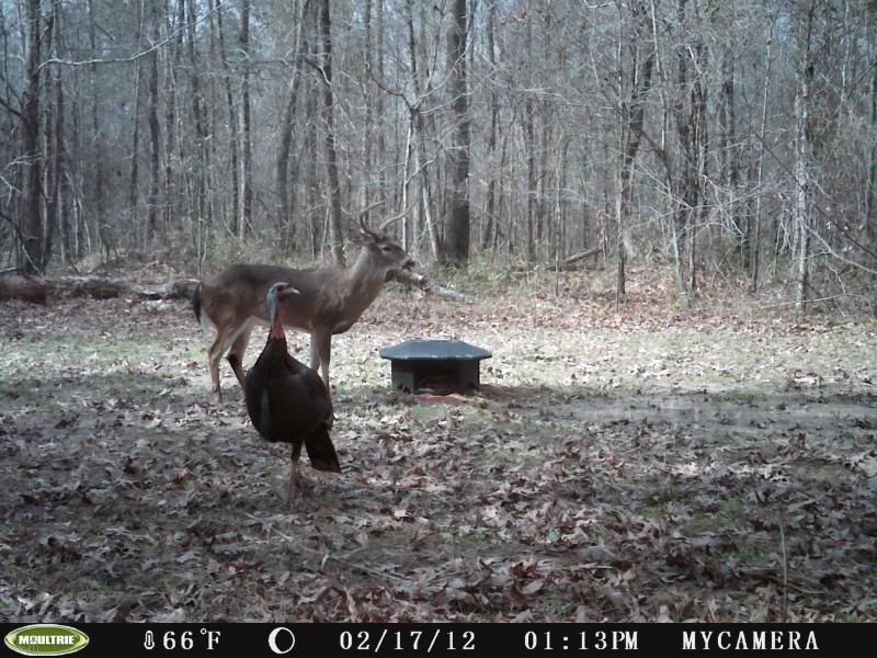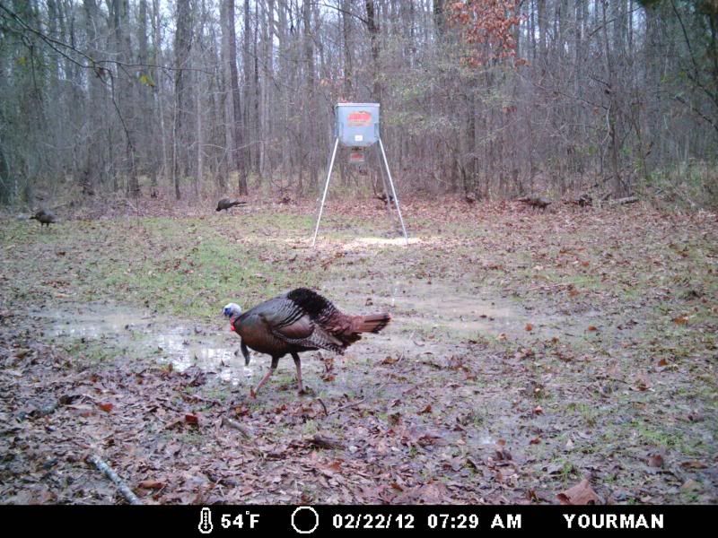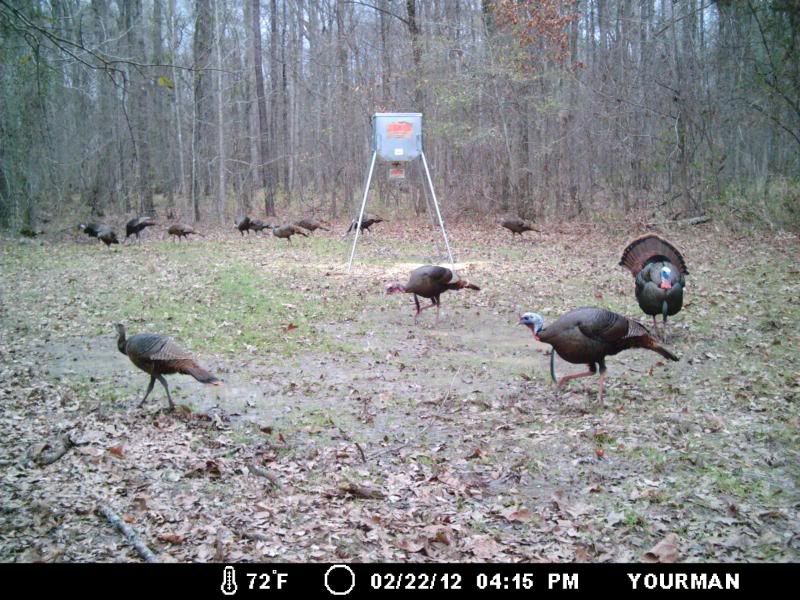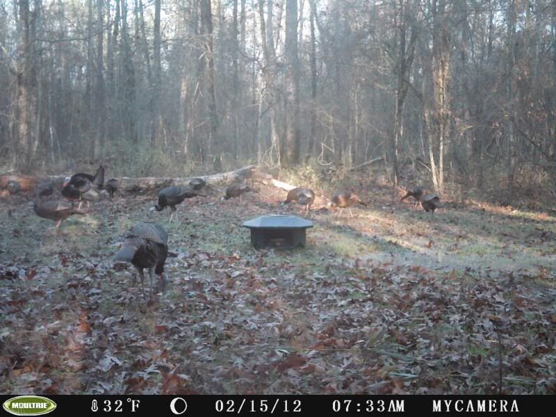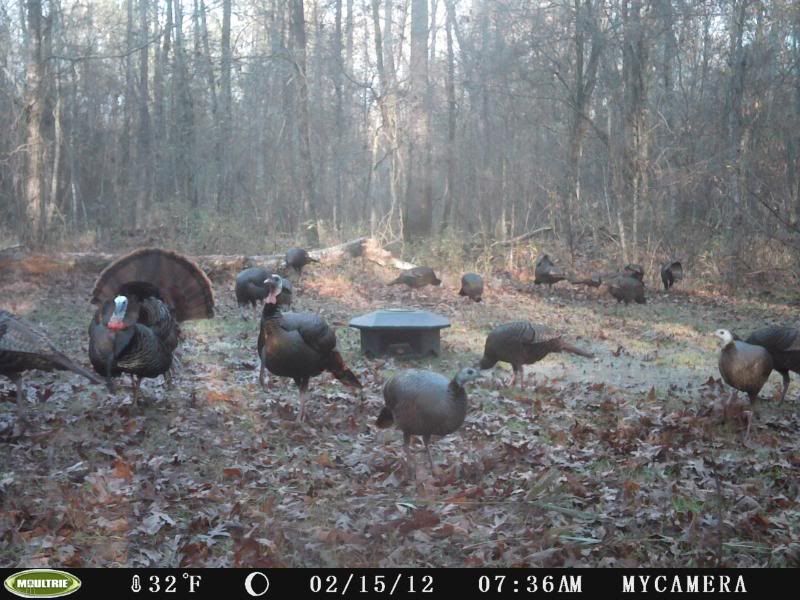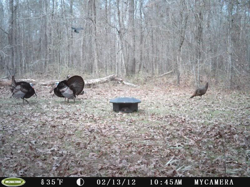 Checked the cameras Sunday and only had 3 gobblers on one of them, but I still have hopes of better results in the future.  The birds are still there I'm just haven't gotten them to smile for the camera yet. :funnyturkey: