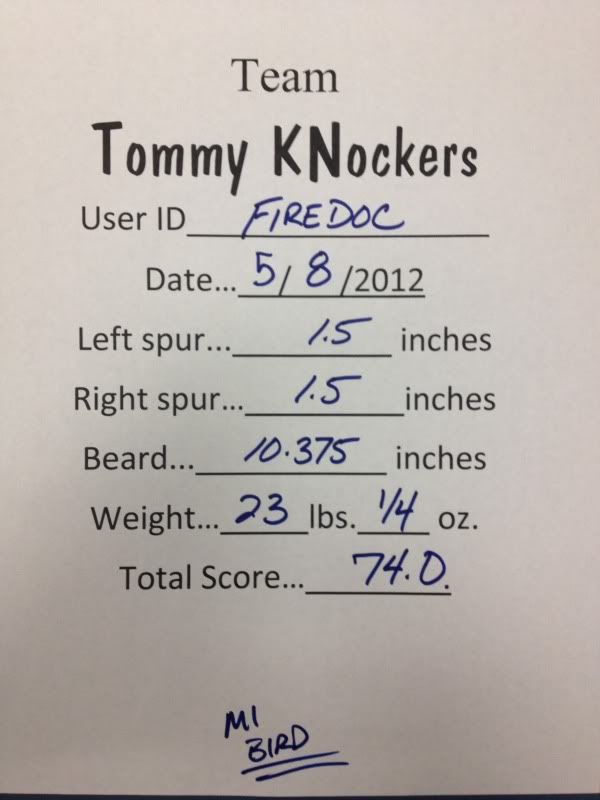 Re: 2012 Tommy Knockers official kill thread